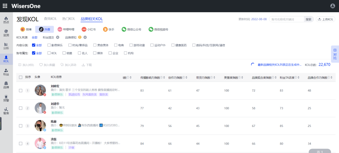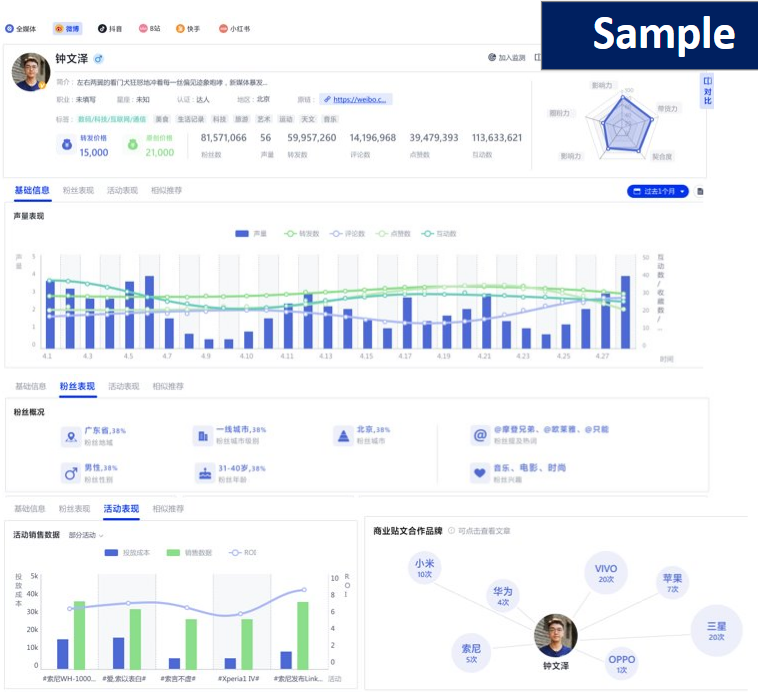 KOL不是随机挑选,研究每个KOL爆火原因,挑选适配标签,确定是否符合品牌调性是重中之重。慧科讯业会根据您的产品和目标客户群体为您迅速的推荐KOL,减少寻找KOL的时间及人力成本,解决这个漫长且复杂的过程。