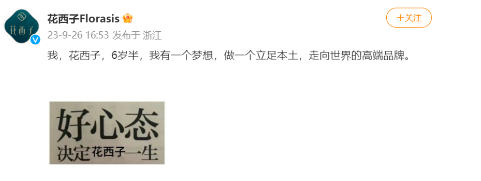 9月26日,花西子官方微博发文“我,花西子,6岁半,有一个梦想,做一个立足本土,走向世界的高端品牌。”并配图文字:好心态,决定花西子的一生,同时在评论区回复相关争议。秒上热搜后,花西子评论区翻车,有网友直接表示是“发疯文学”,还有人直指花西子偷换概念,刷新了公关认知。