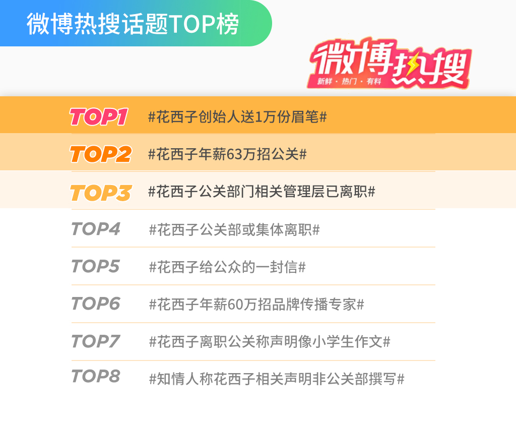 同时有疑似花西子前员工朋友圈截图被曝光,证实了此前传闻,另一知情人士表示,花西子公关团队多人离职消息实属,离职原因或在于“原有公关团队已失去老板的信任”。随后花西子创始人朋友圈称,要在直播间免费送一万份眉笔,紧接着花西子官博发文“好心态的花西子要做一个走向世界的高端品牌”,随即又引发新一轮讨论。