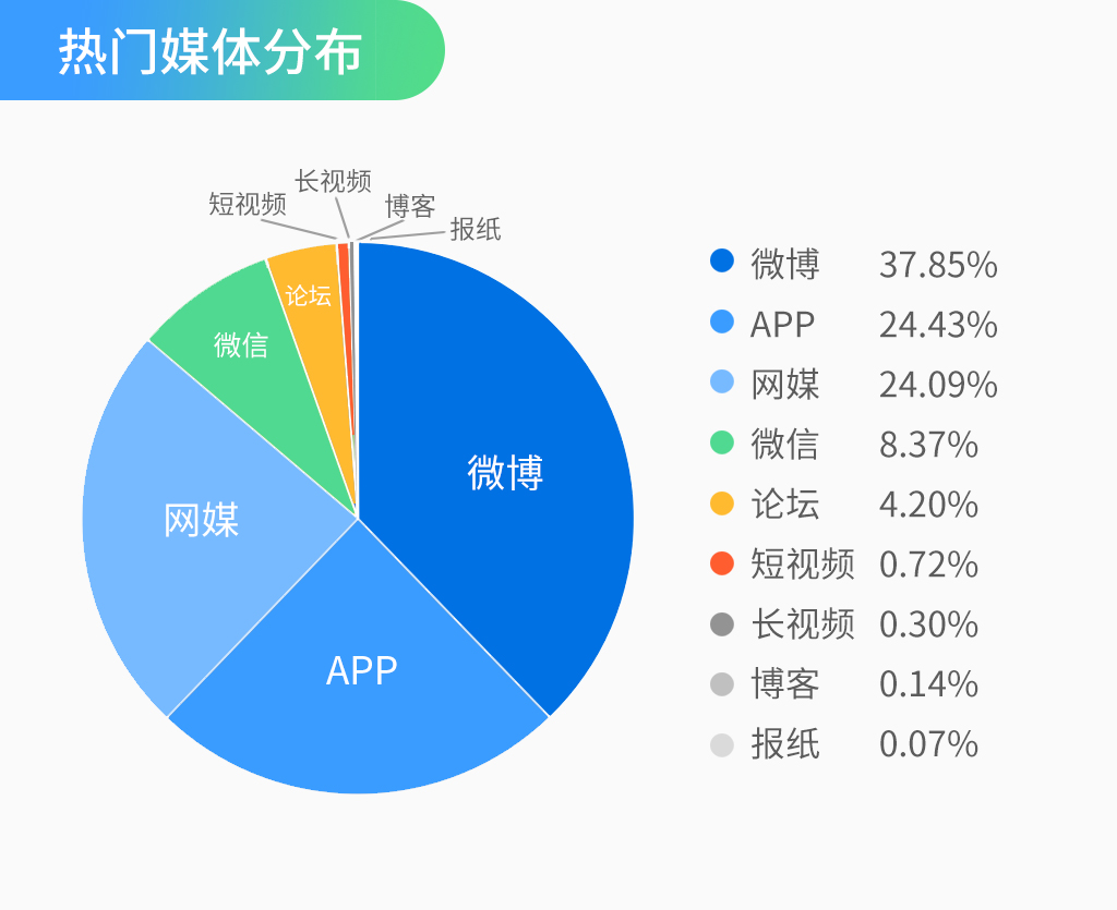该事件至今已经发酵了不短的时间。然而,花西子的操作每次都能精准地在大众雷点上蹦迪,把已经慢慢平息的舆论再次激荡,堪称公关届“知名”案例。根据慧科讯业监测数据显示,截至9月27日,与花西子相关的话题信息已在各大媒体平台引爆讨论,信息主要发布于微博、新闻APP和网媒等平台,其中,微博的讨论声量最高,占比37.85%,整个事件在9月20日18点曾达到过一次传播高峰,至今仍在发酵。伴随着花西子在评论区的一再发言,涌入更多新的关键热词,涉及品类从快消、日化、零食、鞋服,一直蔓延到文具,国货品牌们纷纷用积极行动来迎接这万万没想到的“泼天富贵”。