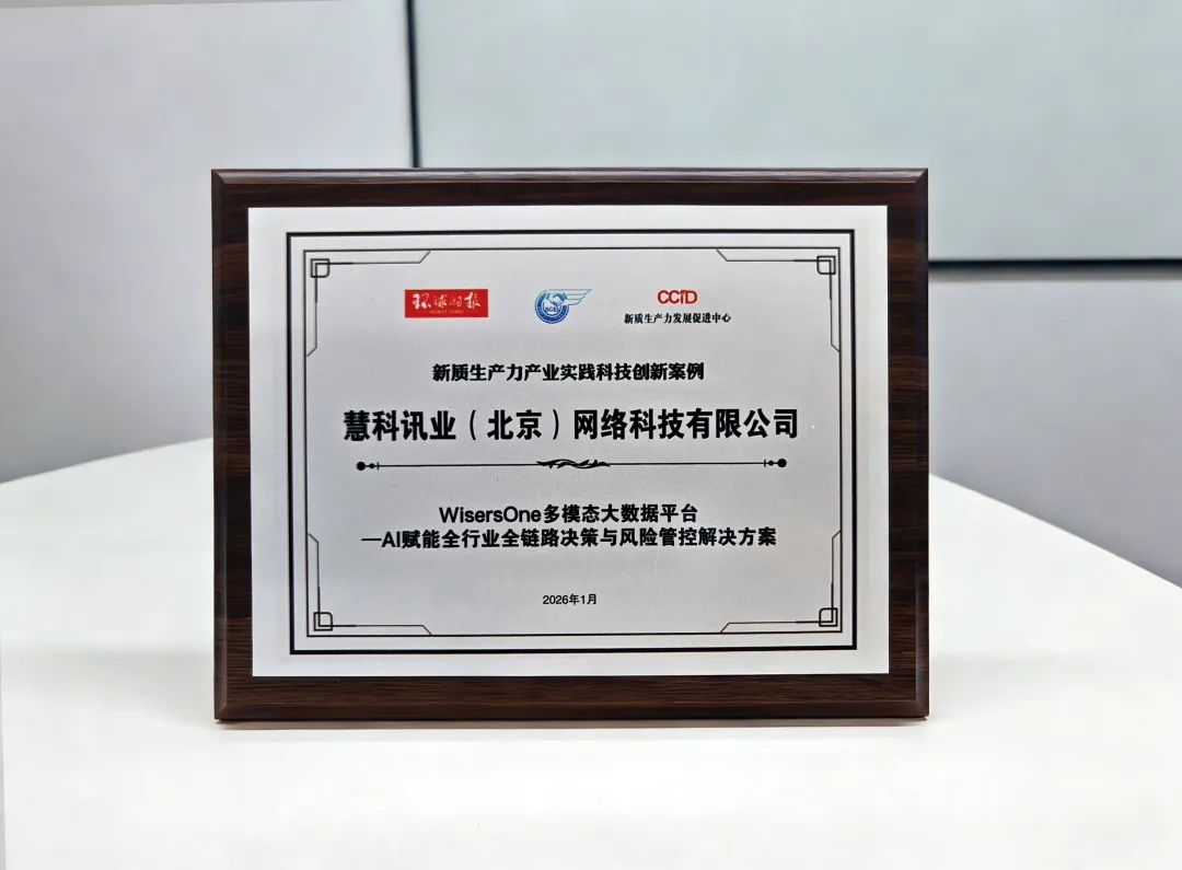 慧科讯业WisersOne多模态大数据平台荣获《环球时报》主办新质生产力示范案例,展现慧科讯业深厚的AI技术实力及商业应用实践获得行业高度评价及广泛认可。