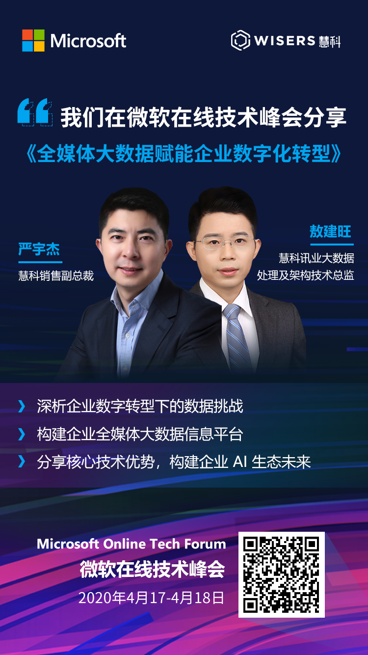企业的数字化转型绝非一朝一夕之功,如何用数字化的方式来帮助提升企业效益,寻找新的协作方式,扩大经营范围?也许一次分享并不能解决所有问题,但就像慧科讯业的愿景是让世界上没有难做的决策一样,相信通过微软和慧科讯业这些行业领袖企业的努力,企业数字化转型的道路会越来越顺畅。未来,慧科讯业还将提供更多直播相关内容,包括媒体研究、舆情监测、金融风控等多场景的产品解决方案,以线上分享交流的形式助力更多企业实现数字化转型和人工智能技术的应用。