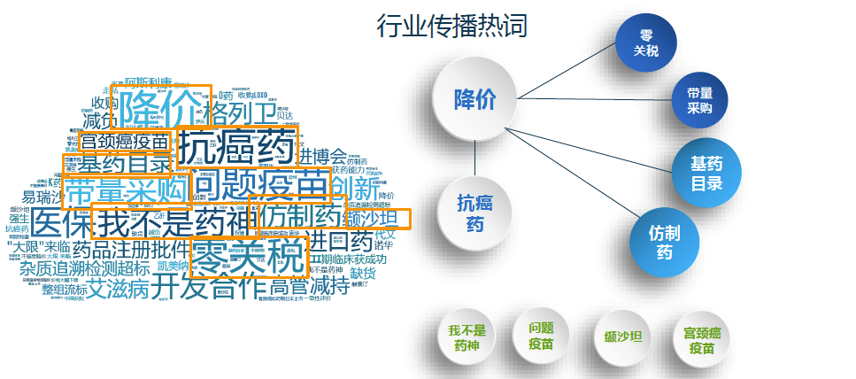 行业舆论环境分析之后,Cosmo又对2018年度医药行业热点事件进行了梳理。电影《我不是药神》和权健事件毫无意外的成为2018年的行业热点事件,“药神”从电影上映,到人们对电影原型陆勇的关注,再到大家对抗癌药高昂价格的质疑,最后相关部门落实降价保供,Cosmo清晰地梳理了整个事件的传播脉络。权健事件则揭开了保健品市场及直销行业的乱象,从丁香医生的一篇《百亿保健帝国权健和它阴影下的中国家庭》刷爆朋友圈开始,短短3天之后公安机关立案侦查,整个事件到达传播峰值。