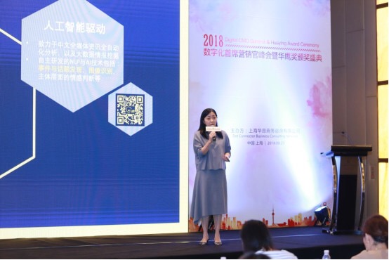 8月22日,慧科讯业WisersAnalytics总经理杨慧旋女士受邀出席了于上海举办的“2018数字化首席营销官峰会”,并在会上发表了重要讲话。据悉,本次峰会持续2天时间,邀请了国内外优秀品牌方共同探讨数字时代下品牌营销的前沿热点话题。