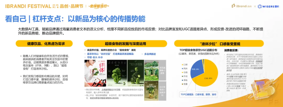 以茶饮行业为例,从口感、人群、场景等大的方面不断深入细分,直至确定每一个场景层的产品、口味,分析它们与新品在哪些方面表现出色,又在哪些方面引发了用户的负面反馈。