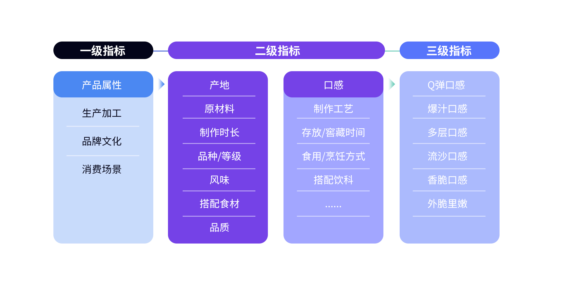• AI 技术加持的行业知识图谱,多层级挖掘,细化到品牌、产品、口味、口感等层层下钻分析