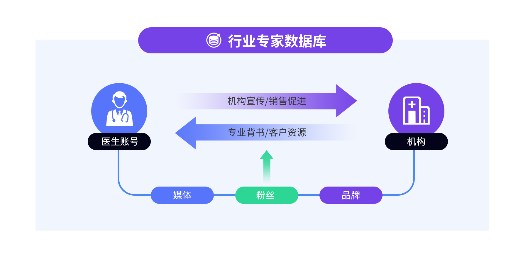 医生账号库——超万个医生持续不断专业医生累积,完善医生所属机构,跨平台账号等 机构账号库——针对超过万家机构、公立医院进行监测,持续优化