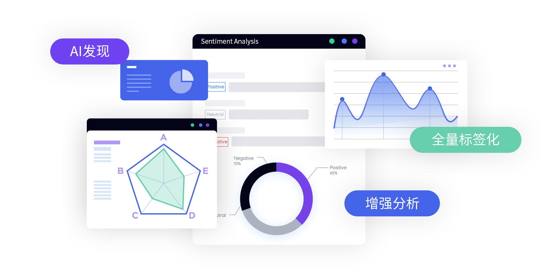 基于AI的多模态数据融合技术(PDF/视频/语音/图像识别),构建营销全链路解决方案。通过水军过滤、销量预测、购买意愿模型等AI增强分析,实现从产品创新、品牌营销全生命周期阶段AI赋能。45个品牌模型训练结合行业知识图谱,精准识别真实声量、挖掘消费动机,提供垂直行业的分析及研究解决方案,构建品效合一的增长加速器。
